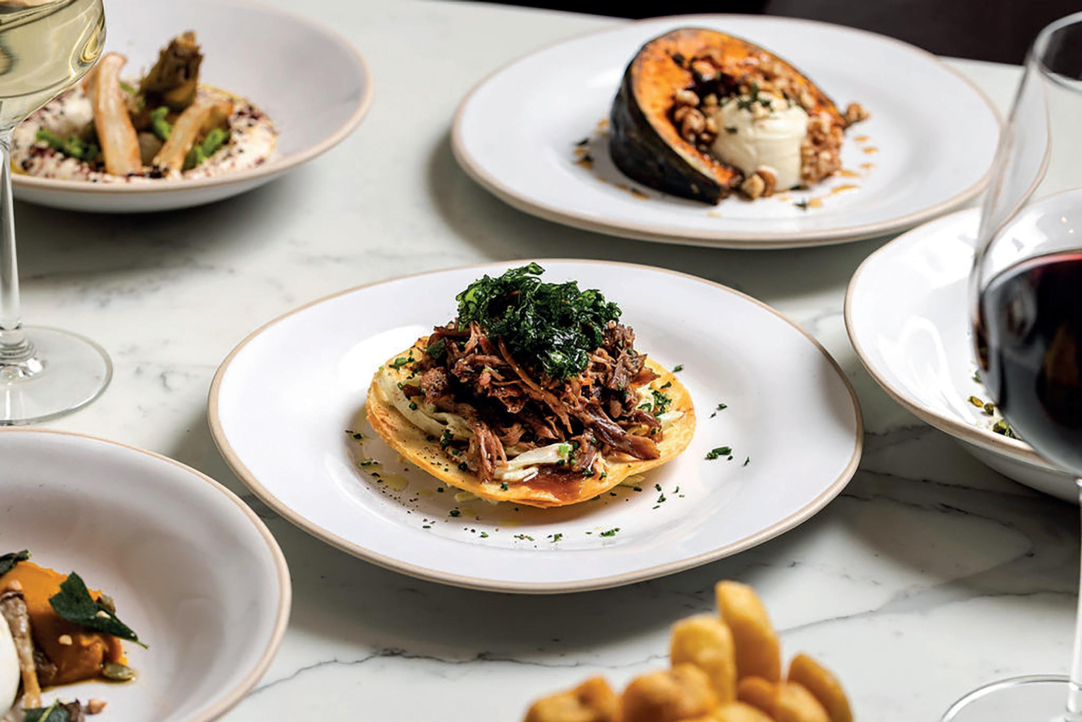 The grill delivers the menu’s stars: saffron fregola with red mullet, cuttlefish, and mussels; presa iberica served with chimichurri and ajo blanco; and whole sea bream finished with zesty green harissa and Amalfi lemon. The octopus steals the show, arriving with labneh, Kalamata olives, capers, raw fennel, sundried tomatoes, Za’atar, and smoked paprika. Complementing the main attractions are house-made pastas and vibrant salads that round out the à la carte offerings.