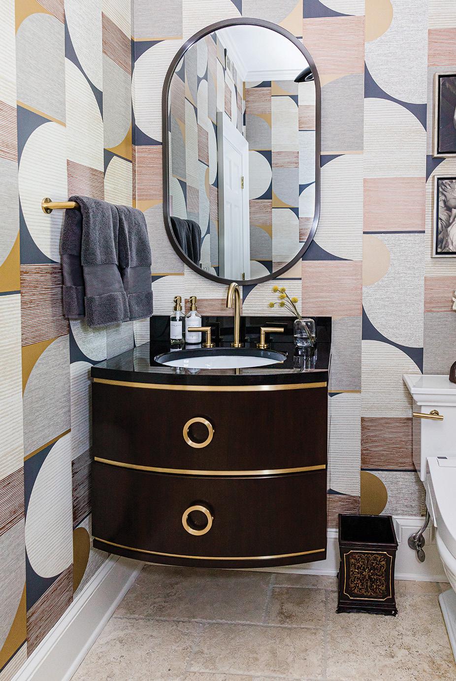 The transformation encompassed the kitchen, living room, dining room, office area and sunroom, plus new pantry and laundry spaces. Even a powder room received updates with new shelving, wallpaper and fixtures. The family room, which had been beautifully finished during the original work with built-in shelving around the fireplace, received minor updates to complement the new design while preserving its classic charm.
