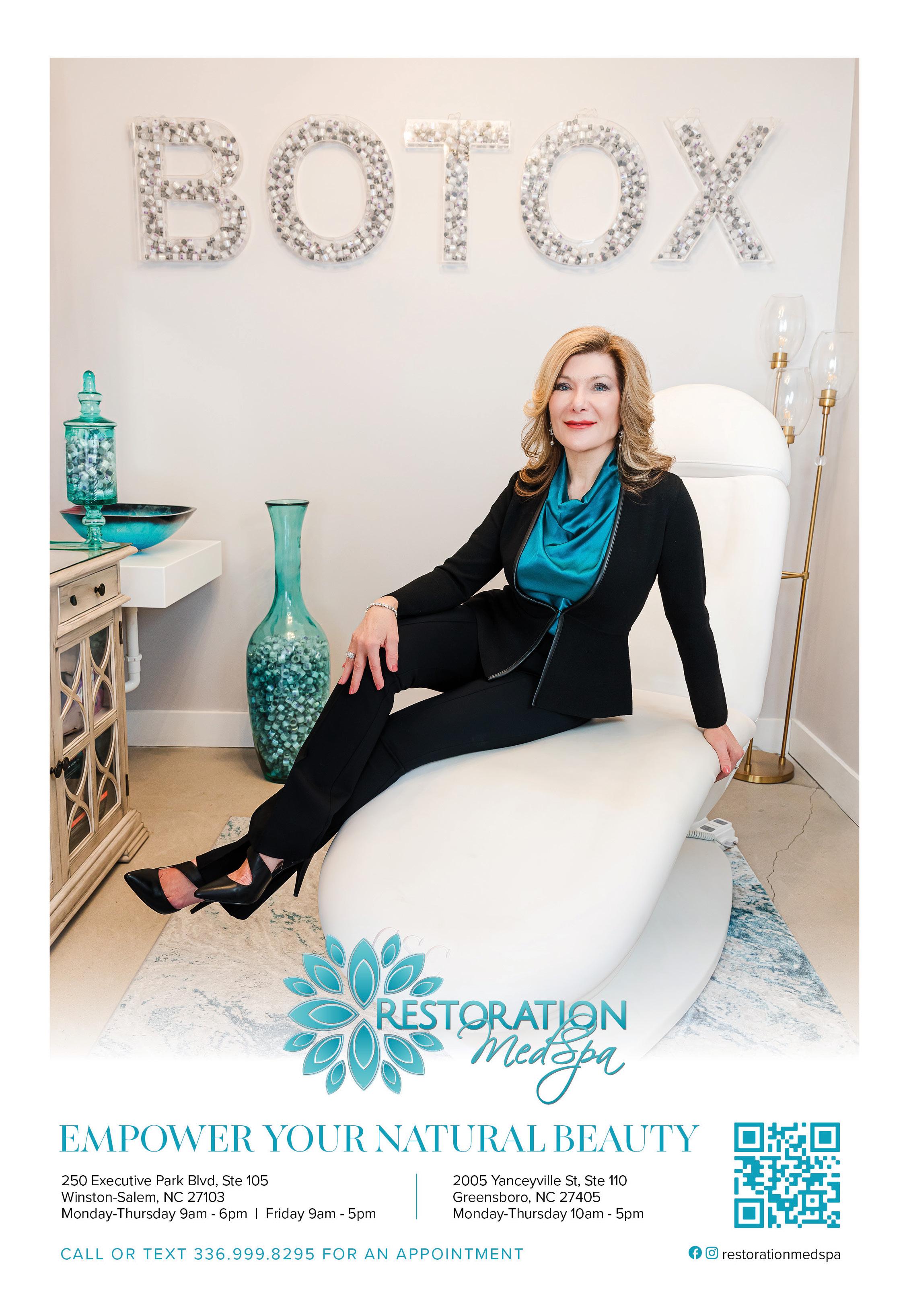 Visit us in Winston-Salem at 250 Executive Park Boulevard, Suite 105, or in Greensboro at 2005 Yanceyville Street, Suite 110. Call or text us at 336-999-8295, or visit RestorationMedSpa.com to start your journey today.