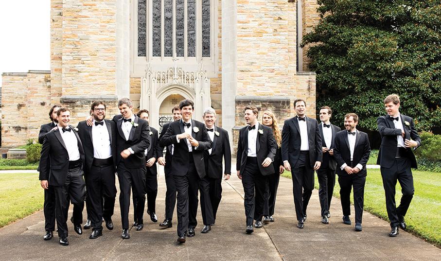 Along with the bride and groom, guests danced to Infinity Show Band at the reception at High Point Country Club. Colorful arrangements mirroring the bright theme of the weekend were prepared by Cindy Armfield and Dawn Bingham, both of High Point, and displayed in custom pieces by LiBird Studio of New Orleans. In a nod to the groom’s hometown of New Orleans, the reception transitioned to the after party with a traditional second line around the Emerywood golf course to the getaway car (and buses!) to enjoy the vibrant High Point nightlife.