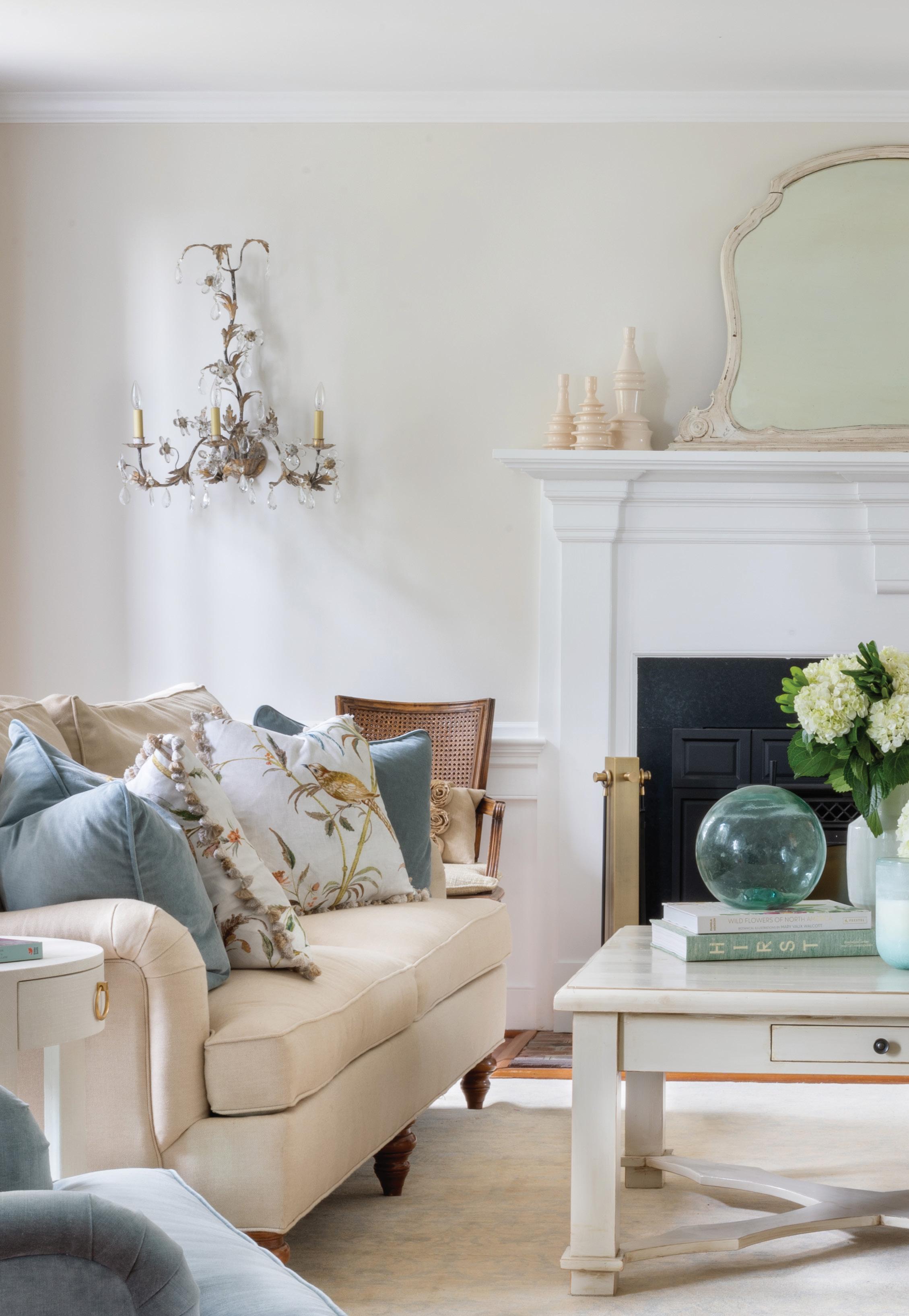 Serene could also describe the living and dining rooms of a Greensboro home, designed by the team at Knight Carr & Company. Outfitted in soft neutrals and blues, and awash in natural light, the rooms beckon occupants to linger and converse long after dinner ends.