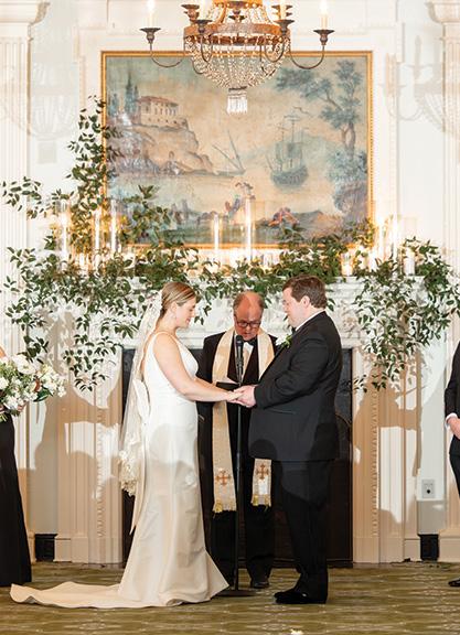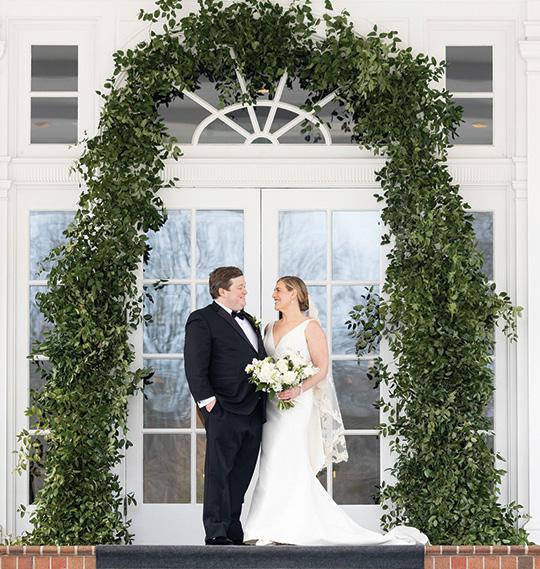 Annie’s dream for her wedding day was an ode to her parents’ 1992 nuptials: timeless and elegant. With the help of wedding coordinator Kim Moore and the expertise of Grace Jones, owner of Joneswell Flowers, Annie’s vision came to life. From the lush greenery arch that welcomed