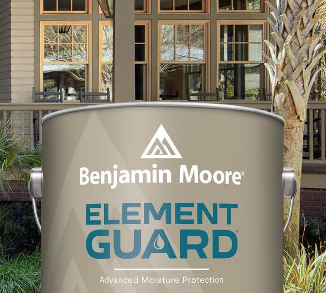 “M” symbol are registered trademarks licensed to Benjamin Moore & Co. 4/23 Advanced Moisture Protection. Gorgeous Exteriors. Benjamin Moore’s Element Guard®: • Guards against wind-driven rain, excessive humidity, and other harsh weather conditions • Provides a mildew-resistant coating • Delivers early rain resistance, helping extend the painting season • Available in 3,500+ Benjamin Moore colors Stock up on Element Guard today! Contact your Benjamin Moore rep. Don’t have a rep? Email us at info@benjaminmoore.com