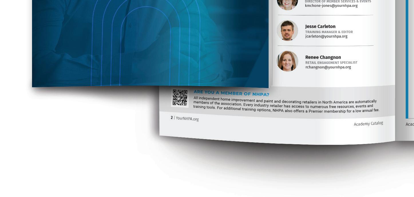 If you are looking to develop a strategic plan for your business that includes robust training for your staff, scan the QR code to view the new North American Hardware and Paint Association (NHPA) Academy Catalog or visit YourNHPA.org/academy to download your own copy today. This catalog lists everything available through the NHPA Academy for Retail Development.