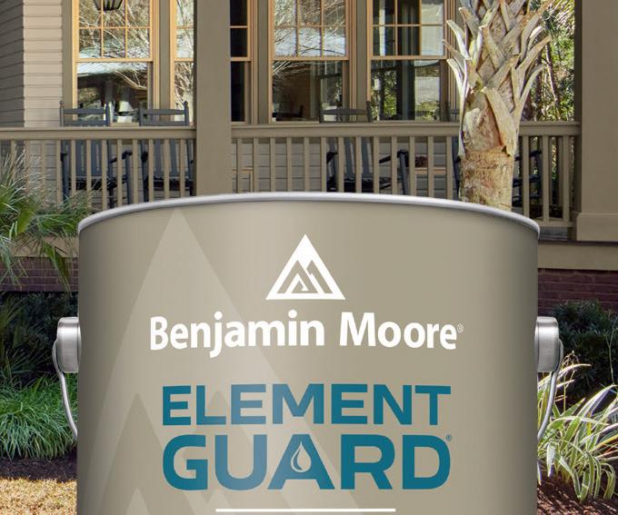 Beautiful exterior color that stands up to the elements ©2023 Benjamin Moore & Co. Benjamin Moore, Element Guard, and the triangle “M” symbol are registered trademarks licensed to Benjamin Moore & Co. 1/23 Advanced Moisture Protection. Gorgeous Exteriors. Benjamin Moore’s Element Guard®: • Guards against wind-driven rain, excessive humidity, and other harsh weather conditions • Offers exceptional permeability & a mildew-resistant coating • Delivers early rain resistance, helping extend the painting season • Available in 3,500+ Benjamin Moore colors Stock up on Element Guard today! Contact your Benjamin Moore rep. Don’t have a rep? Email us at info@benjaminmoore.com