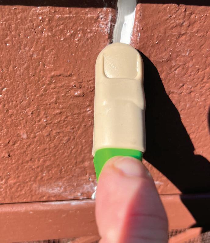 “The paint is put into the caulk tube and mixed by hand so the color is evenly distributed,” Rafolski says. “A hardener is added and the caulk is hand mixed again, and then it is ready to use in 30 minutes.”