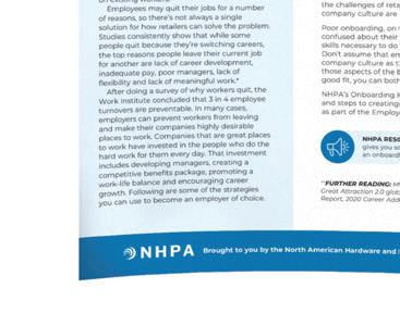 ACCORDING TO THE 2023 JOB SEEKER SURVEY from Bankrate, a consumer financial services company, 56% of the workforce is likely to look for a new job in the next 12 months, up from 51% in 2022. With employee retention issues showing no signs of slowing, the North American Hardware and Paint Association (NHPA) created the Employee Retention Toolkit to help retailers navigate these challenges. The best practices in the toolkit go beyond just keeping employees from leaving, sharing insights into creating engaged and highly productive employees. Explore these retention stats and how the resources in the Employee Retention Toolkit can counteract retention issues.
