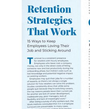 On Page 20, retailers share the various technology programs, systems and processes they’ve brought onboard to streamline operations that don’t require large investments of money or effort. For more insights on how technology positively benefits your business, check out these additional stories.