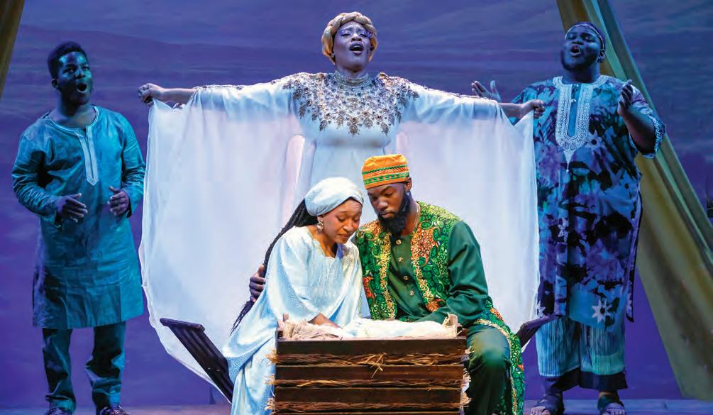 to contemporary gospel, from high-spirited praise to quiet, jazzy moments of reflection. We’ve kept two of Hughes’ original poems from the 1961 production. The dialogue and dialect reflect Black storytelling traditions. Our costumes use African textiles and patterns, and that reinforces the cultural identity of the piece.