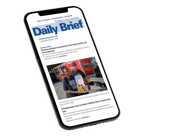 “The road is cleared,” said Galt. “We are going back to the world.” He raised his hand and over the desolate earth he traced in space the sign of the dollar. Ayn Rand, Atlas Shrugged The Business Observer (ISSN#2325-8195) is published weekly on Fridays by the Gulf Coast Review Inc./DBA Business Observer, 1970 Main Street, Floor 3, Sarasota, FL 34236; Periodicals Postage Paid at Sarasota, FL, and at additional mailing offices. The Business Observer is circulated in Charlotte, Collier, Hillsborough, Lee, Manatee, Pasco, Pinellas, Polk and Sarasota counties. POSTMASTER: Please send changes of address to the Business Observer, 1970 Main Street, Floor 3, Sarasota, FL 34236. For information on reprints, visit BusinessObserverFL.com