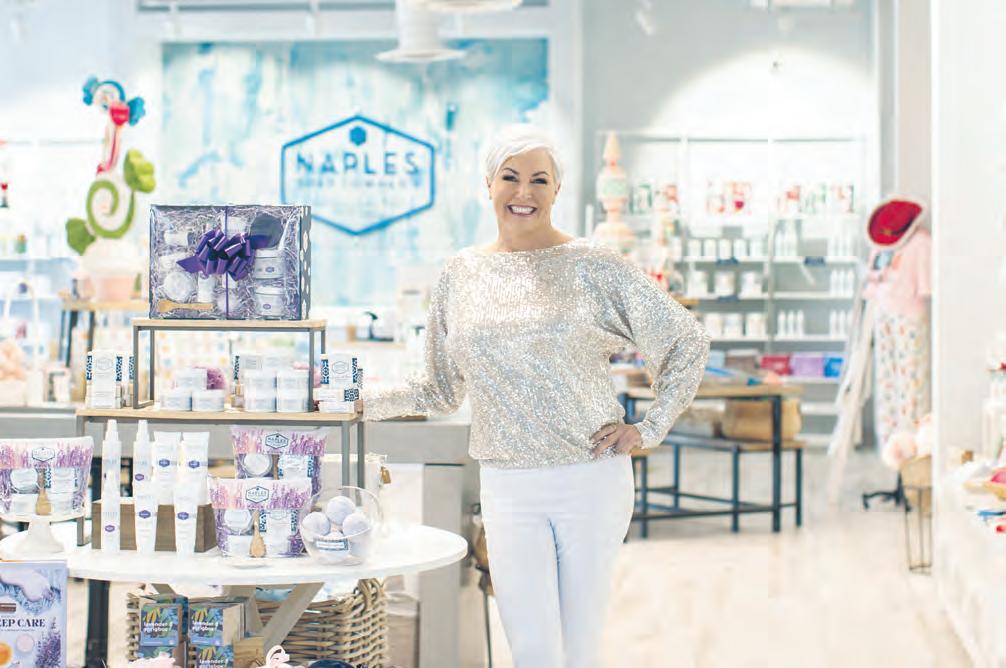 Also, Wallin, the Small Business Development Center at Florida Gulf Coast University Distinguished Entrepreneur for 2024, has overcome long odds before. A nurse by trade, Wallin battled eczema and psoriasis, as did her daughter, for years. None of the products on the market worked to solve the issue. So she created her natural skincare line through a lot of trial and error. Her first store opened in 2009, in a 300-squarefoot spot in Naples. The company now has 13 locations in Florida from the east coast to the Panhandle, Sales have grown along with the store network. The company projects $15 million to $16 million in sales in 2024, according to the investor prospectus, up from $12.3 million in 2023. But that revenue growth has come at a cost: Naples Soap had $1.96 million in short-term debt in its most recent
