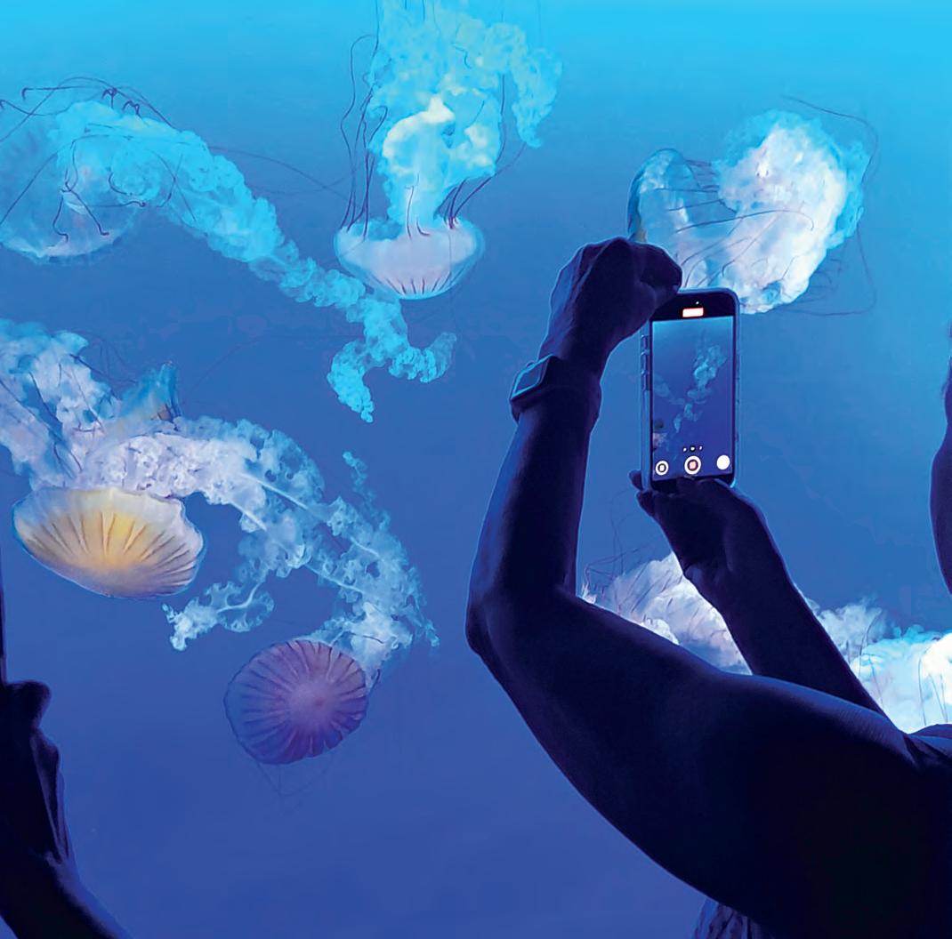 here they were on Oct. 6, Lakewood Ranch’s Leslie Higgins and Sarasota’s Nancy Scanlon, with their bodies crunched down on the floor as they tried to get a better angle to take photos at the one of the huge fish tanks in the Mote Science Education Aquarium. The two seniors had a bit of trouble getting back up, but they didn’t care.