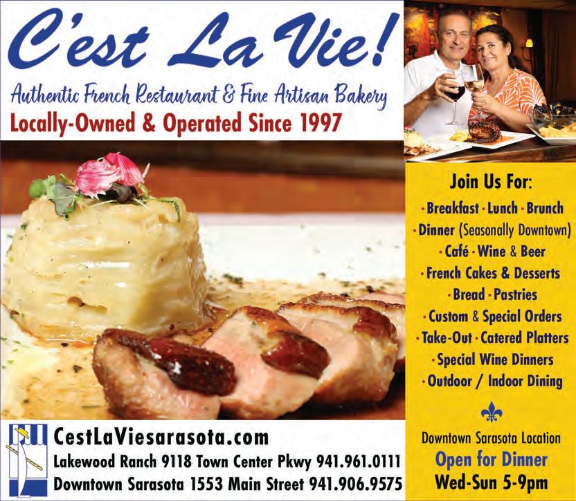 FARMERS MARKET Runs from 10 a.m. to 2 p.m. on Lakefront Drive in Waterside Place, Lakewood Ranch. The Farmers Market at Lakewood Ranch, which was voted as the top farmers market in the nation in 2025, will run yearround every Sunday. Vendors offer seafood, eggs, meats, dairy products, pastas, bakery goods, jams and pickles, among other items. For information, visit MyLWR.com.