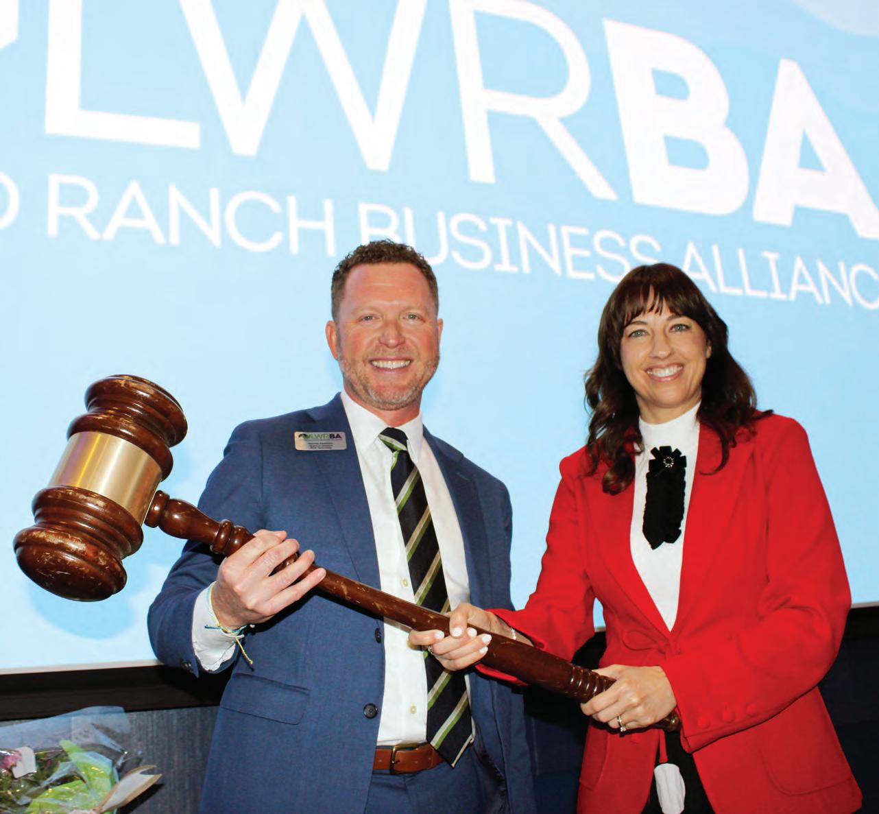 Wayne Parrish accepts the gavel from Julie Fanning, denoting that he has taken over the role of LWRBA chair of the board for 2026.