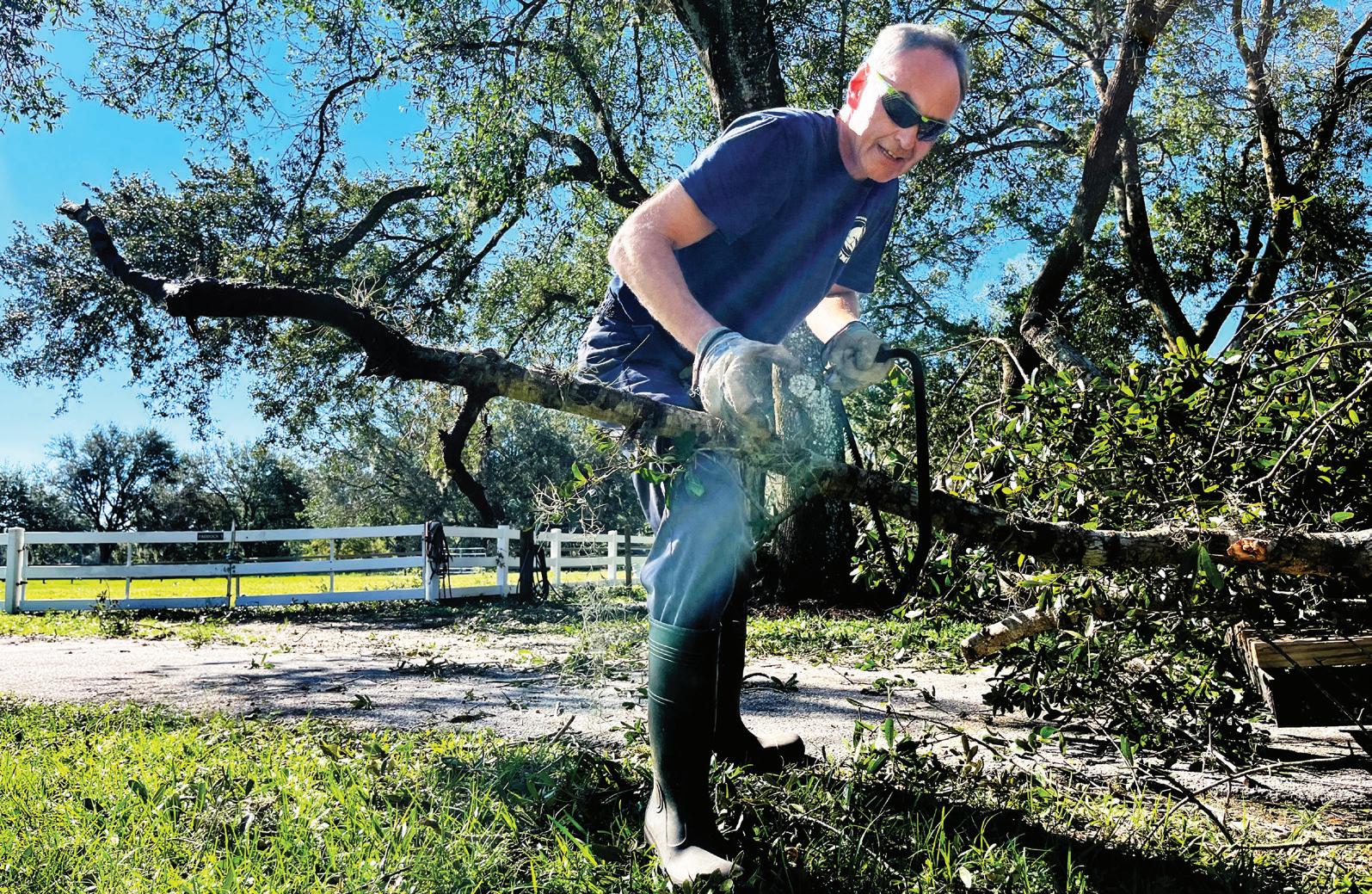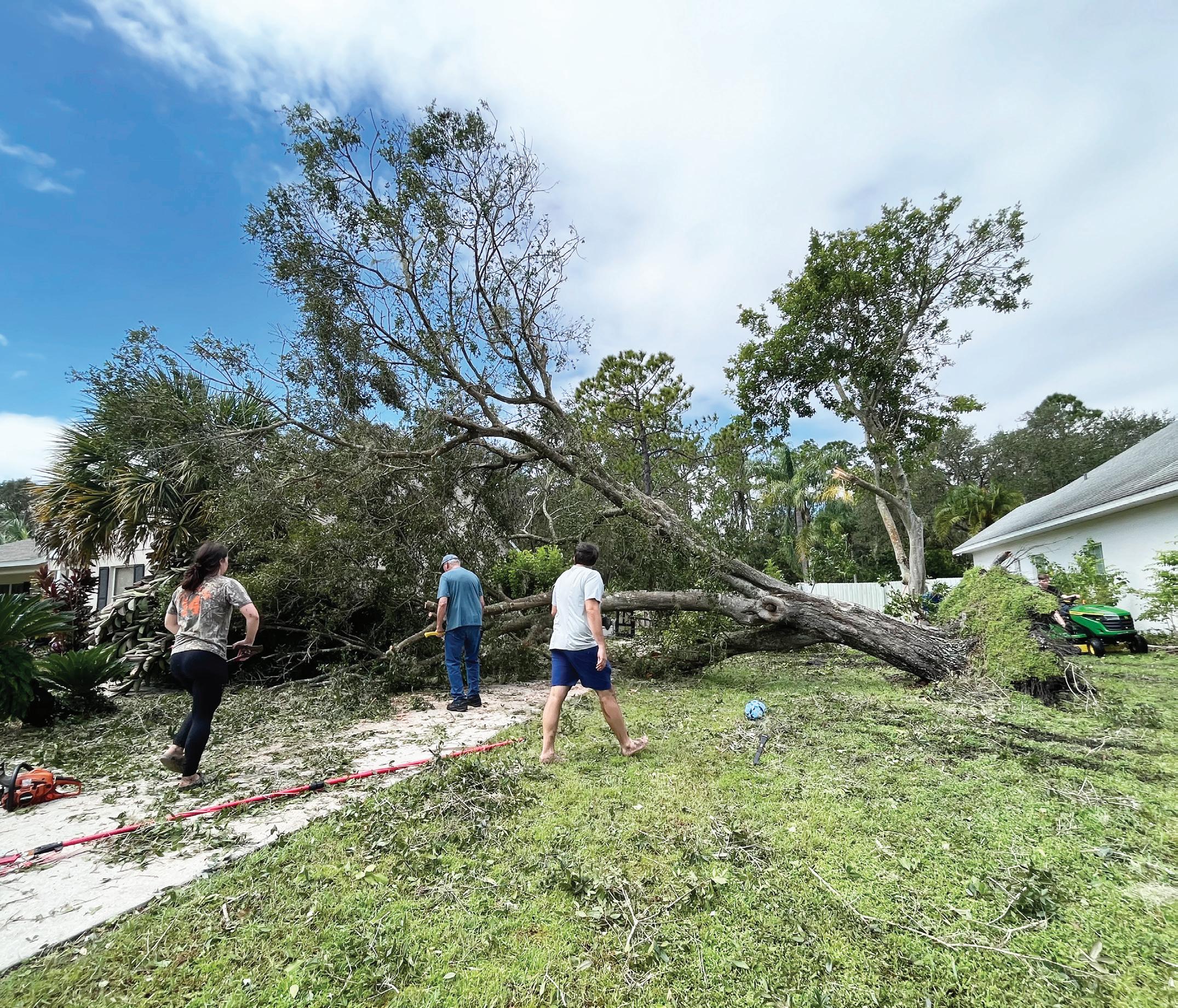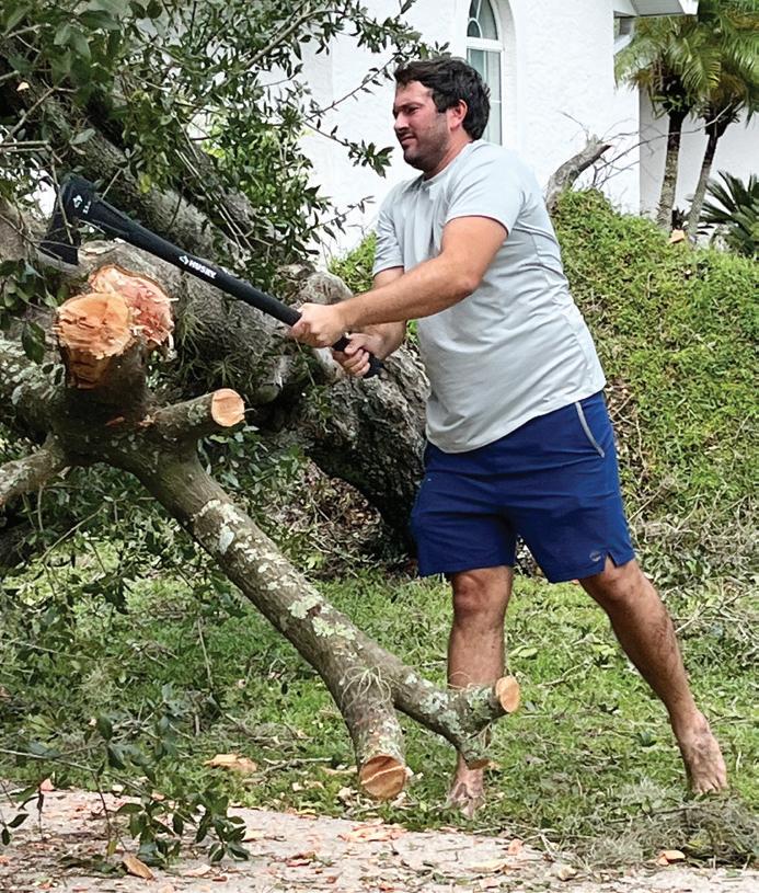 Lakewood National’s Barbie Oster ling and Waterside’s Jill Hen nessey were busy picking up palm fronds and moving them to the edge of the Nate’s Honor Animal Rescue property so they could be taken away. Osterling didn’t have power in