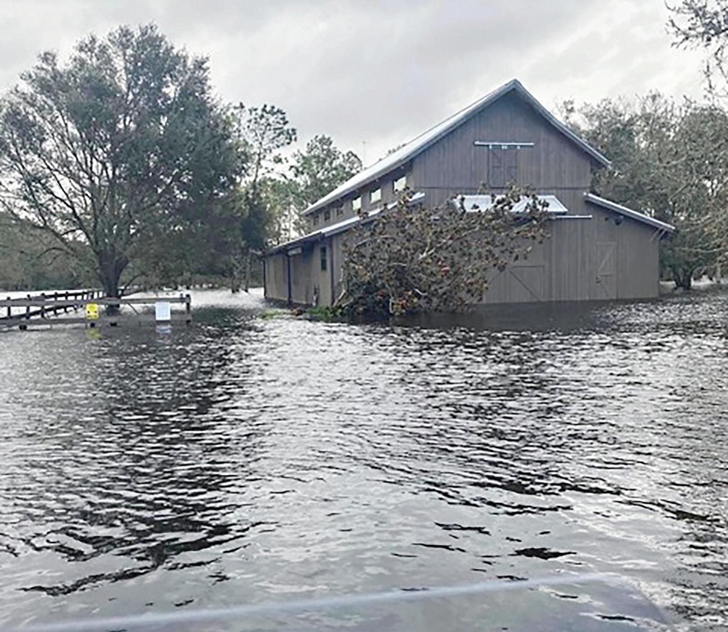 Overflow from the Myakka River floods Rose and Clyde Alstrom’s barn during Hurricane Ian.