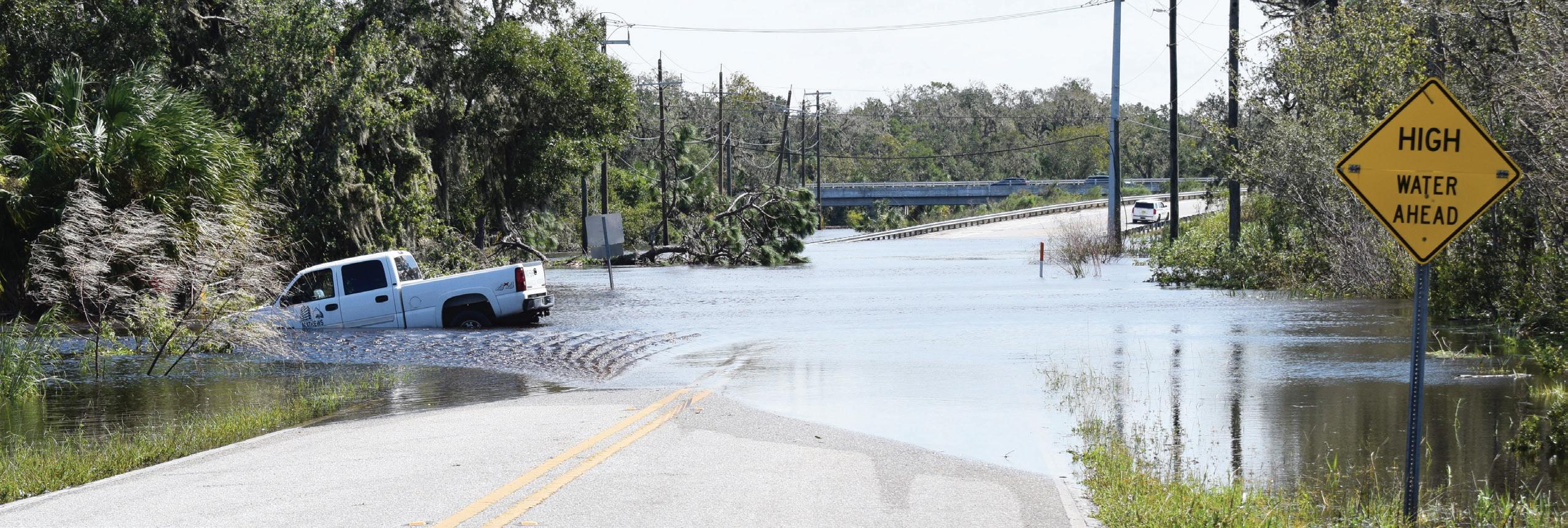 They started making their way down toward Fruitville Road when they saw a huge tree blocking the road with power lines surrounding it. They decided to turn back and try State Road 70. Unfortunately, they came to a bridge that was completely submerged and cars were stalling out as they tried to make it across. But their vehicle made it through.