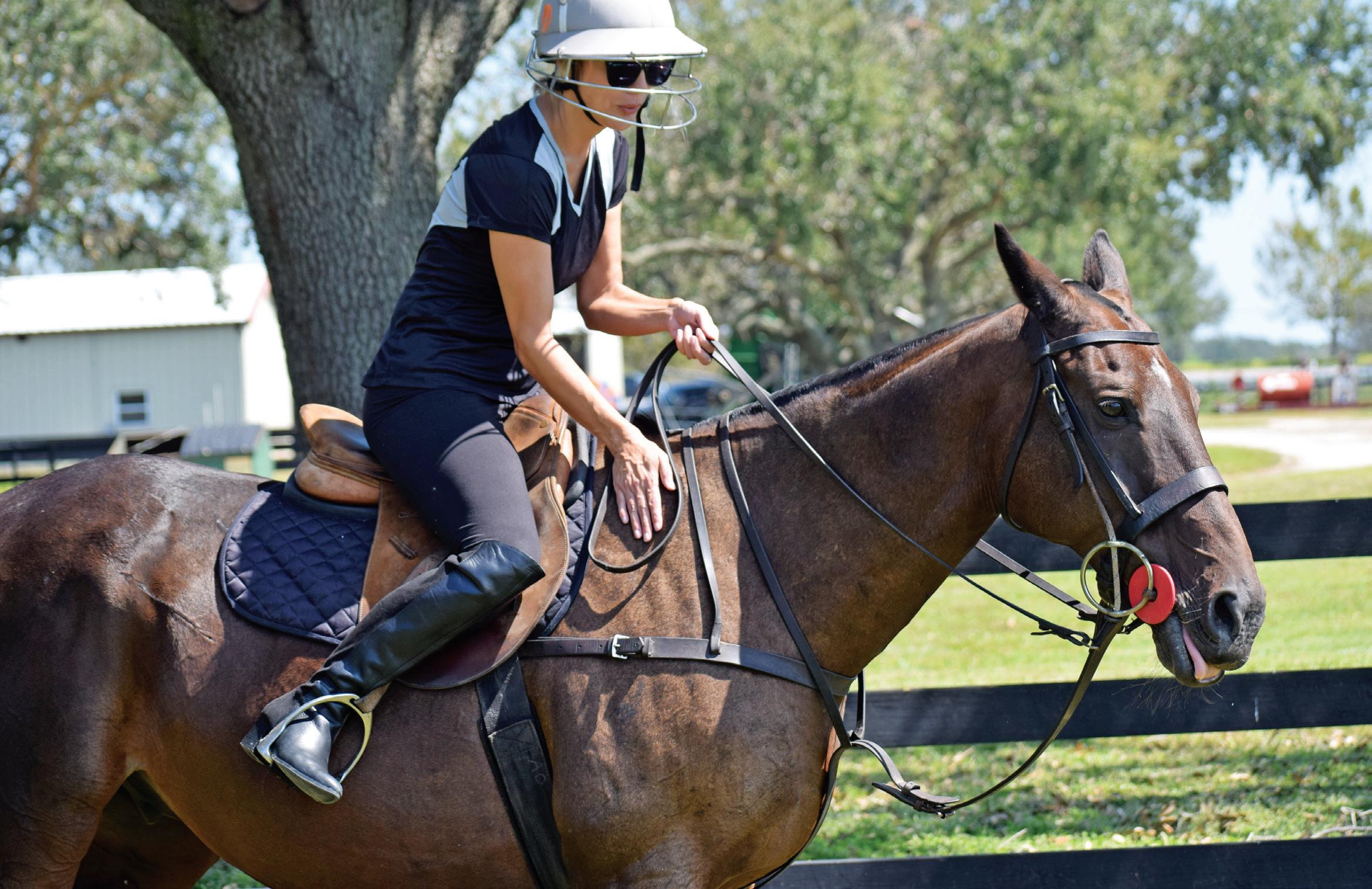 Karen Medford gives Pepe a hug before they embark on her first polo lesson at the Sarasota Polo Club in Lakewood Ranch.