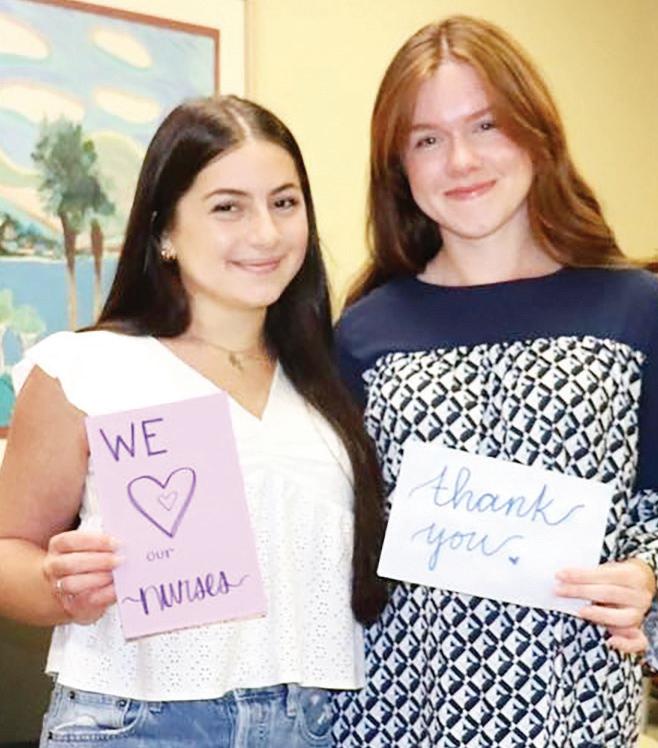 Kate Tuchman and Tierney Thornhill (above), who are seniors at Lakewood Ranch High School, surprised nurses at Sarasota Memorial Hospital with breakfast on Sept. 25.