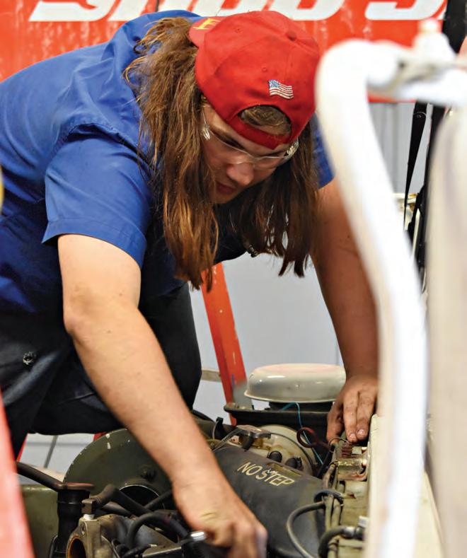 Bradenton’s Paige Godwin, a student in the diesel program, said she is sure they will get the fire engine running.