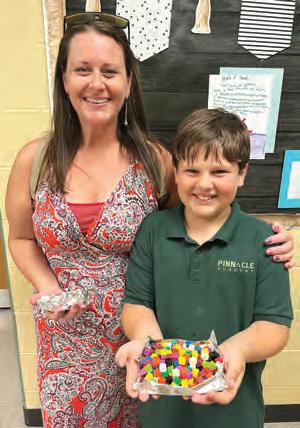 Jenn Lockwood and her son, Wesley Lockwood, a fourth grader at Pinnacle Academy, took a few minutes to build a boat out of aluminum foil.