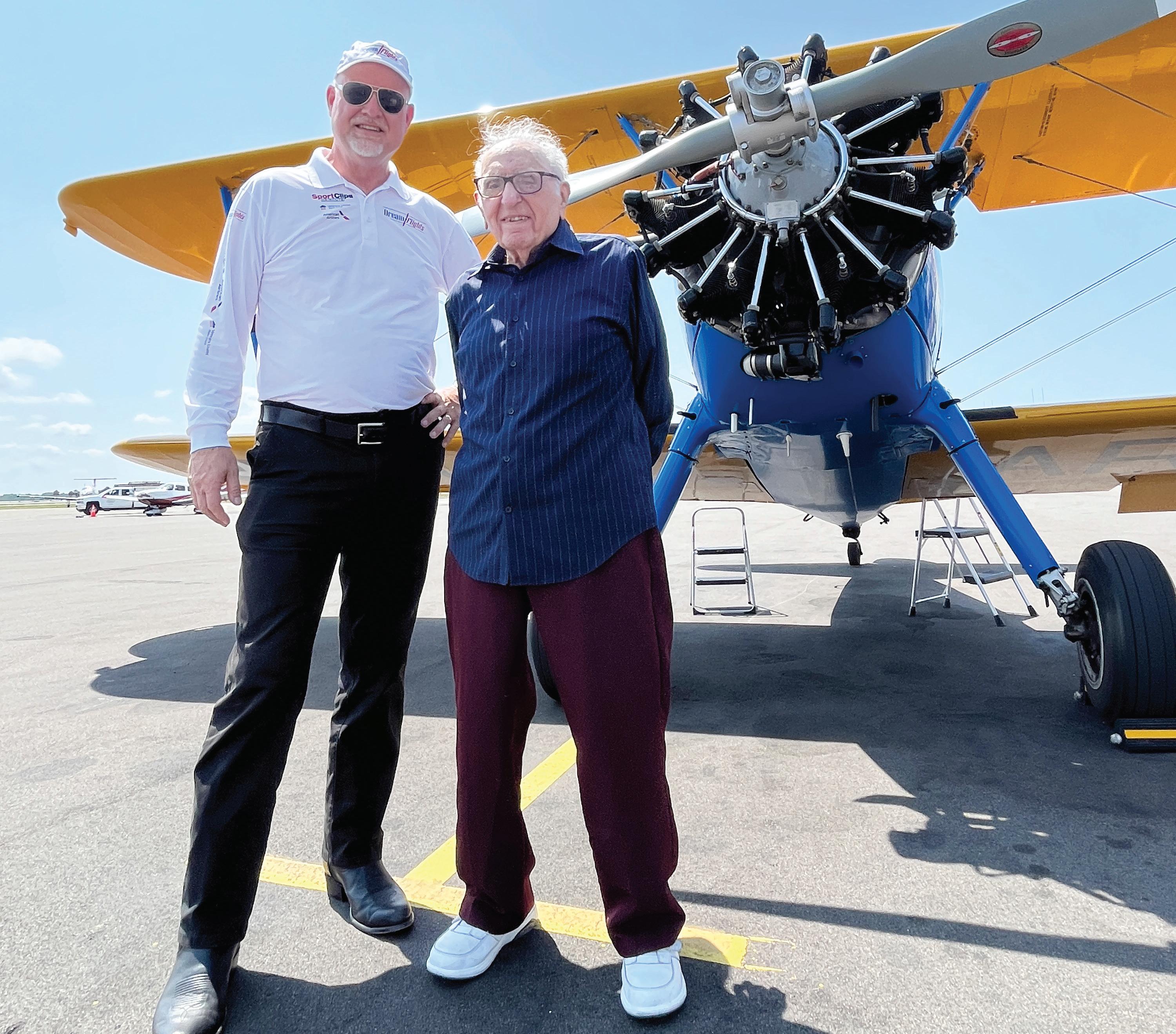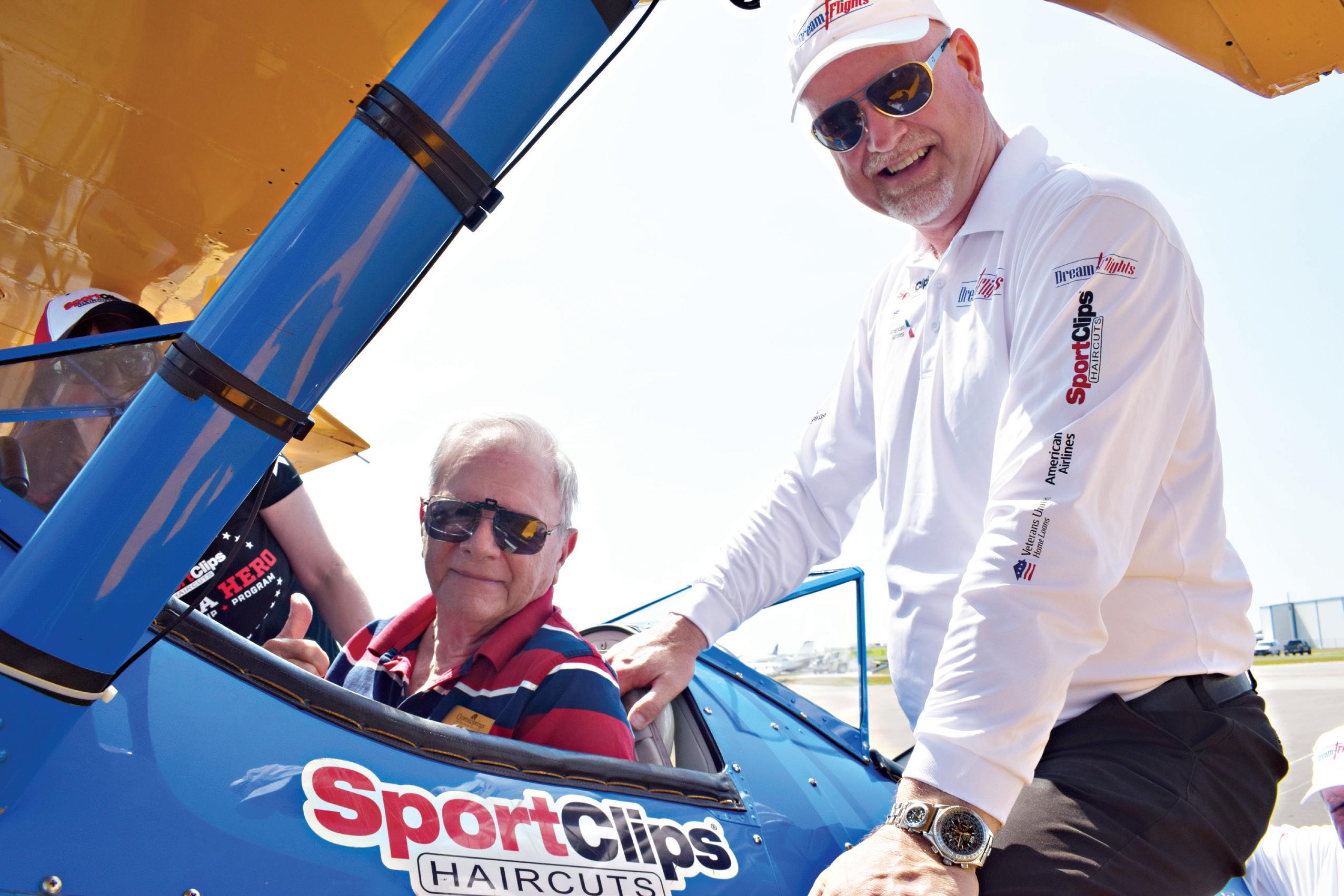 Darryl Fisher, the founder and president of Dream Flights, takes Chip Tominelli, an Army veteran and Cypress Springs Gracious Retirement Living resident, on his second Dream Flight.