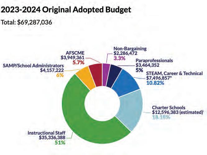 The 2023-2024 adopted budget for the referendum amounts to nearly $69.3 million, of which $49.2 million is allocated for the recruitment and retention of teachers and staff. Specifically, instructional staff receive