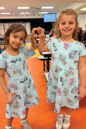 Students, like kindergartners Alexandra Doodnaught and Charlotte Casey (above), teachers and staff members matched outfits with friends and fellow staff members for Twinsies Day. For some students and staff members, the concept of “twinning” was from head to toe with the same hairstyle, clothing and shoes.