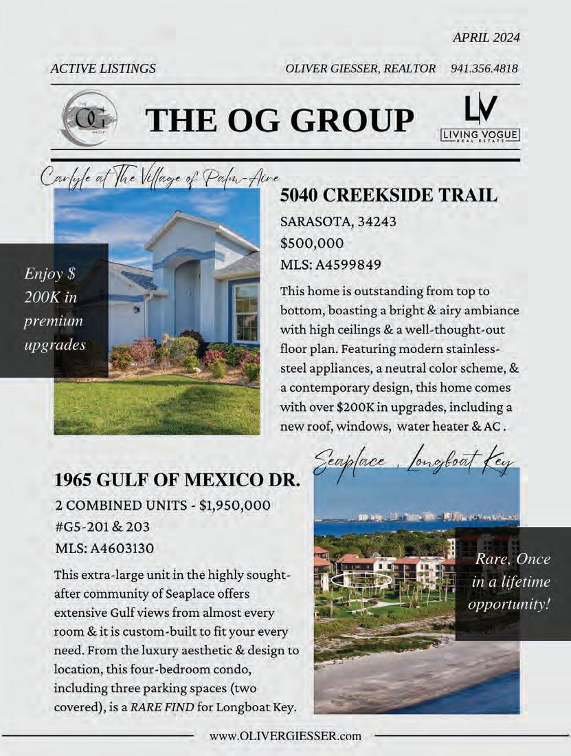 EAST COUNTY OBSERVER | THURSDAY, APRIL 11, 2024 9B YourObserver.com Sales galleries open and available for virtual or in-person presentations. Virtual home tours | OnDemand local experts | Interactive site and floorplans MichaelSaunders.com/New-Homes | 844.591.4333 | Sarasota, Florida Prices as of November 2023 In with the new DOWNTOWN ST. PETERSBURG DOWNTOWN SARASOTA LONGBOAT KEY UNDER CONSTRUCTION NOW TAKING CONTRACTS UNDER CONSTRUCTION The Residences at the St. Regis | 941.213.3300 | SRResidencesLongboatKey.com 400 Central | 727 209.7848 | From the $900,000s | Call for an appointment | Residences400central .com SOTA Residences & Hotel | 941.462.3900 | From $1.8M | Visit the Main Street Gallery | thesota.com En Pointe | 941.685.1598 | enpointesarasota.com | From $2,775,000 GOLDEN GATE POINT MOVE-IN SPRING 2024 422408-1 Ridge at Crossing Creek John and Jennifer Leto sold their home at 7735 Ridgelake Circle to Jodee Gruebele, of Bradenton, for