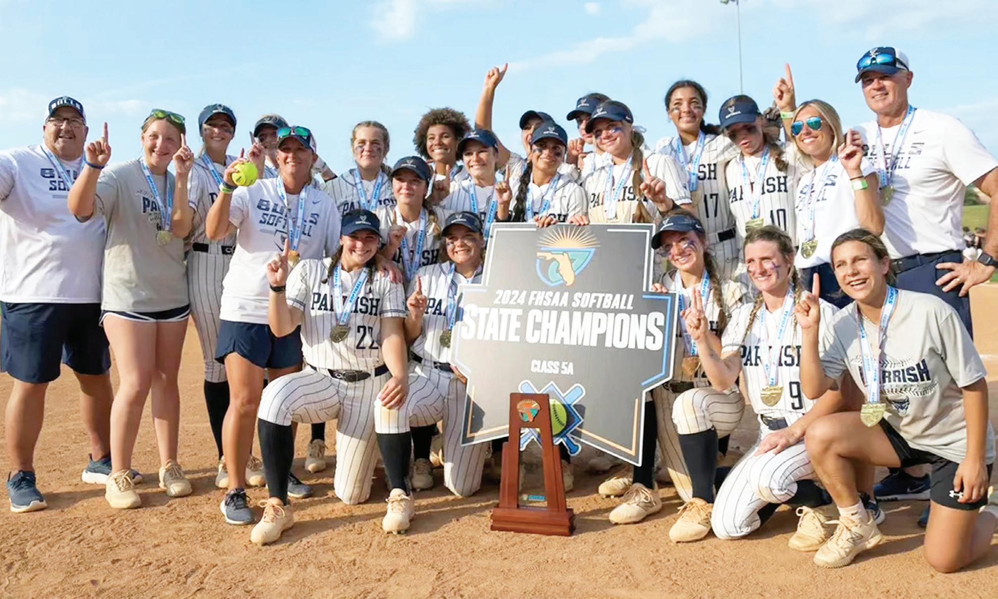 She was right. The Bulls would be fine — actually, more than fine. From that point forward, Parrish (20-8) went 11-0, including a 3-2 eight-inning win over Gainesville High (24-5) on May 24 in the Class 5A championship game in Clermont to earn back-to-back state titles. Just like Parrish rallied to save its season, the team had to rally to secure the championship. Down 2-0 in the sixth inning, the team got RBI hits from senior Ella Romano and Lewis to tie the game. In the eighth, it was again Romano, who hit a walk-off double that scored junior Carsyn Kull. In the Bulls’ celebration were six players from the East County area: