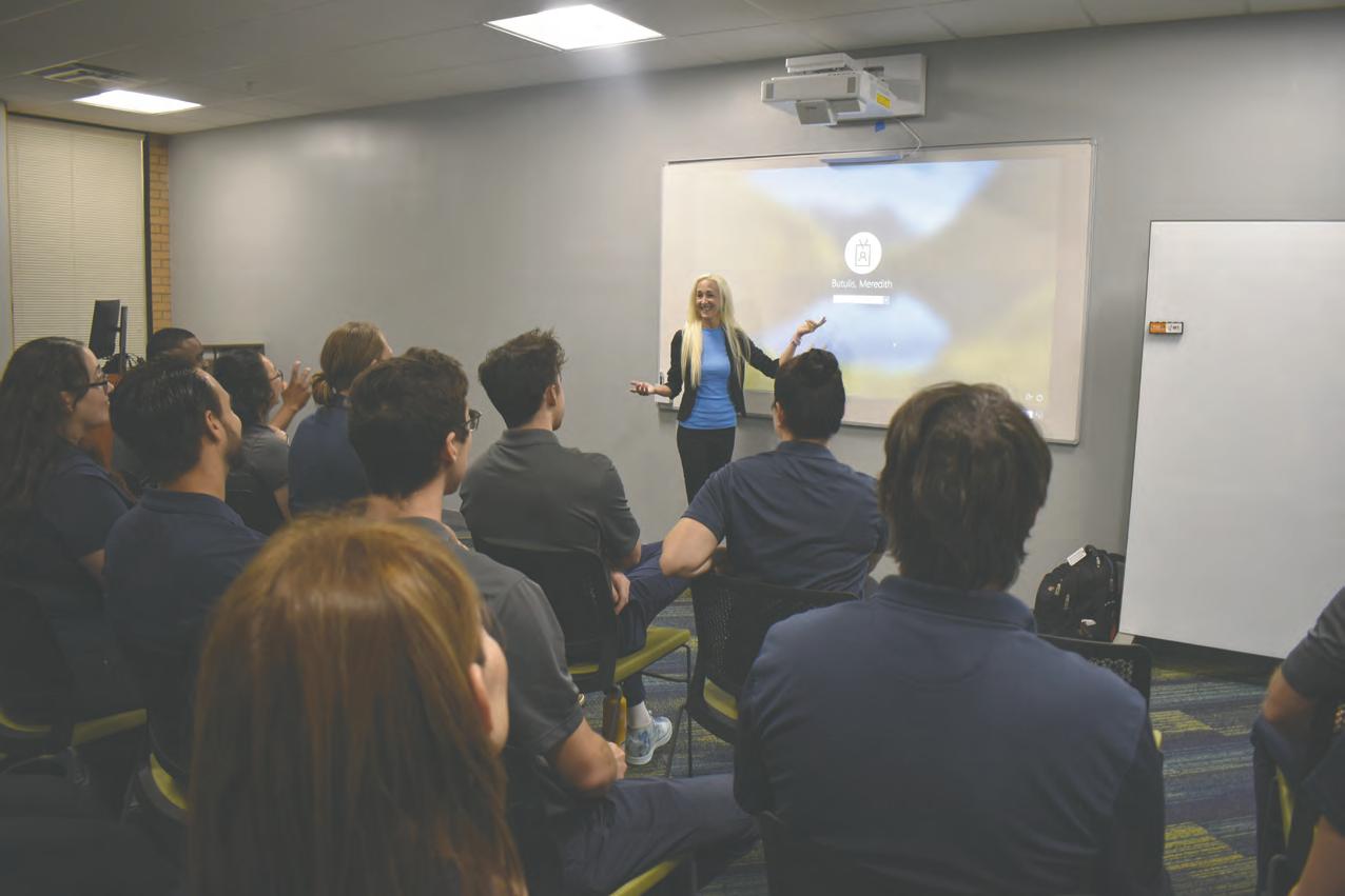 Charlie Morton (above), a rising eighth grader at The Out-ofDoor Academy, had the opportunity to work one-on-one with a dog from Dogs Inc., formerly known as Southeastern Guide Dogs. He learned about training service animals during Dogs Inc.’s visit to the upper school campus in Lakewood Ranch.
