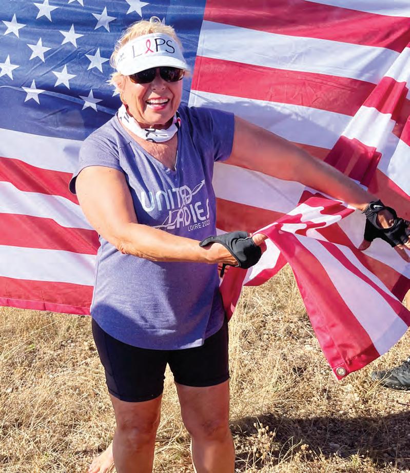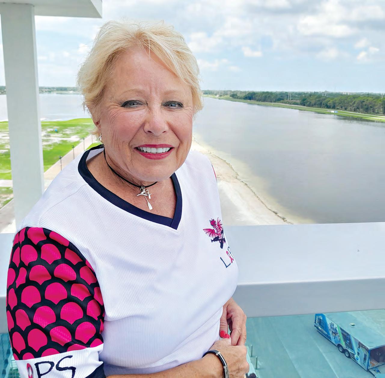 Lakewood Ranch’s JoAnn Moore, standing atop the finish tower,