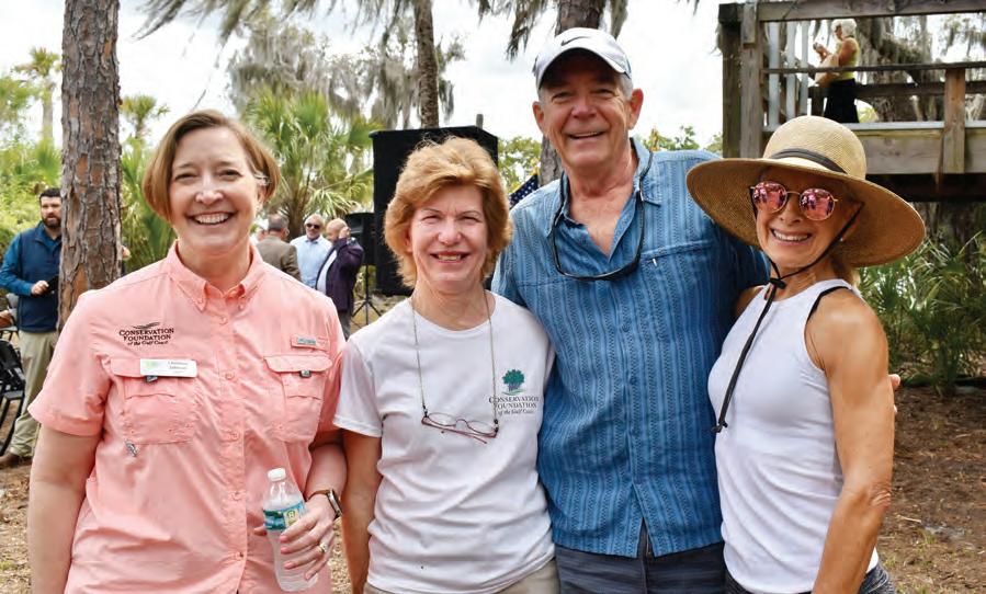 President of the Conservation Foundation of the Gulf Coast Christine Johnson chats with members Debi Osborne, Brandon Snyder and Robin Varon before Manatee’s celebration of purchasing Crooked River Ranch.