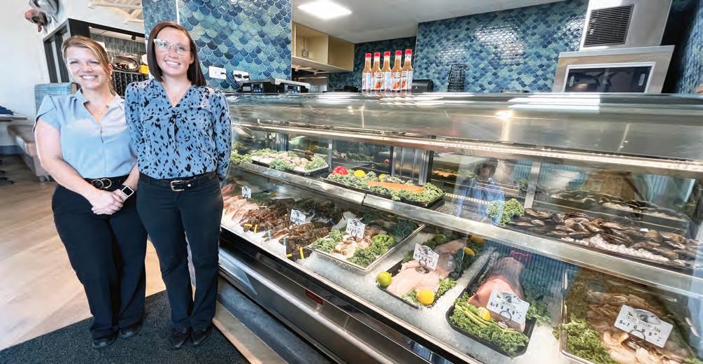 Deep Lagoon Seafood & Oyster House General Manager Leslie Carmody and Division Manager Dacie Broshears show the variety of seafood available in the restaurant’s fresh food market. The wa-