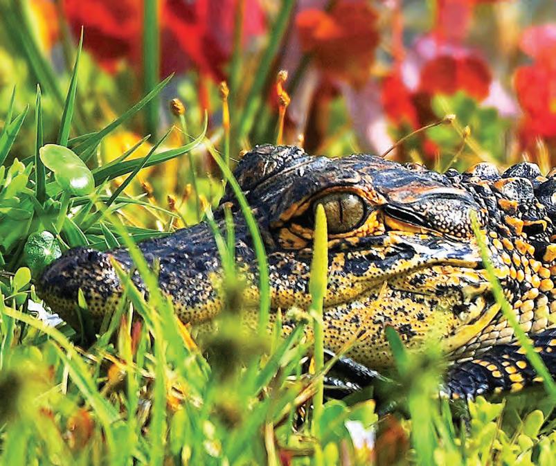 Gordon Silver took this photo of a young alligator soaking up some sun along the water’s edge in Country Club East.