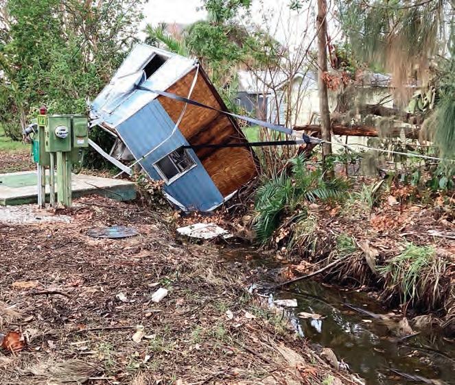 A crew removed a 12-foot-by-12foot shed from a canal near the coast last week. The shed was still intact, but had been blown 20 feet away from where it originally stood.