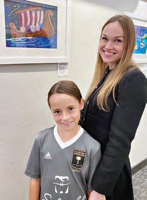 Lakewood Ranch’s Alesia Fogoros (pictured above with her teacher and the studio’s owner Natalya Irlin) created “Viking Ship” using oil pastels on black paper.