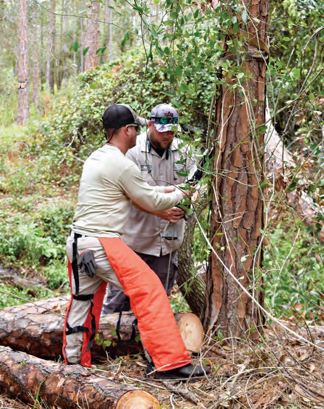 Orlando Buexcuda and Nick Waldron set up a pulley system around a pine tree in