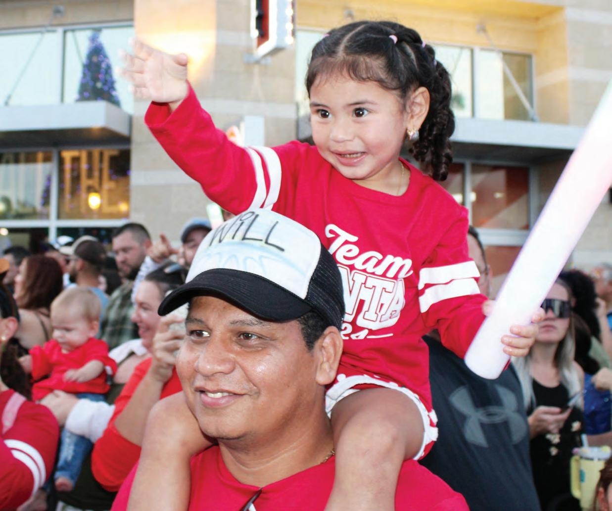 Lakewood Ranch 3-year-old Adrianna Rivas is having a great time at the Santa’s Grand Arrival Parade on the shoulders of her dad, William Rivas.