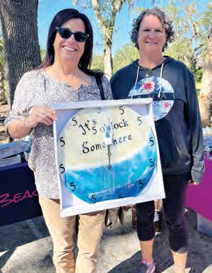 McLaughlin (above with Caudill) bought a clock that carries the Jimmy Buffett line, “It’s 5 o’clock somewhere,” with blue waves and sand on it to resemble the beach.