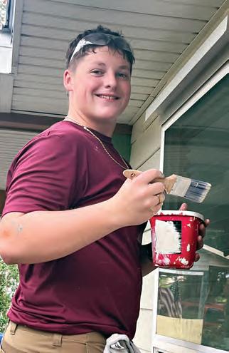 Junior Kyle Clerkin pays attention to all the details as he paints the exterior of the home.