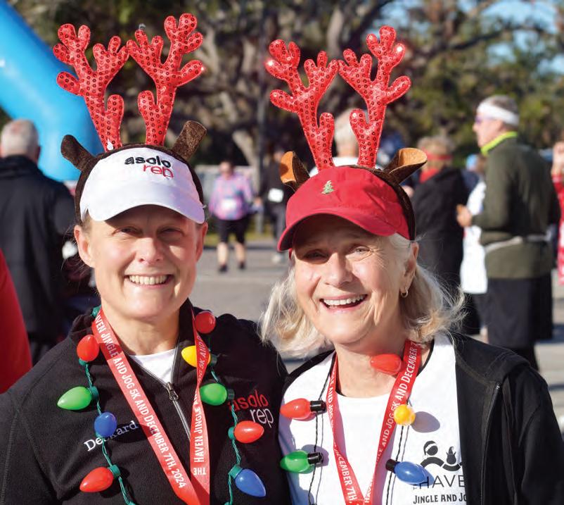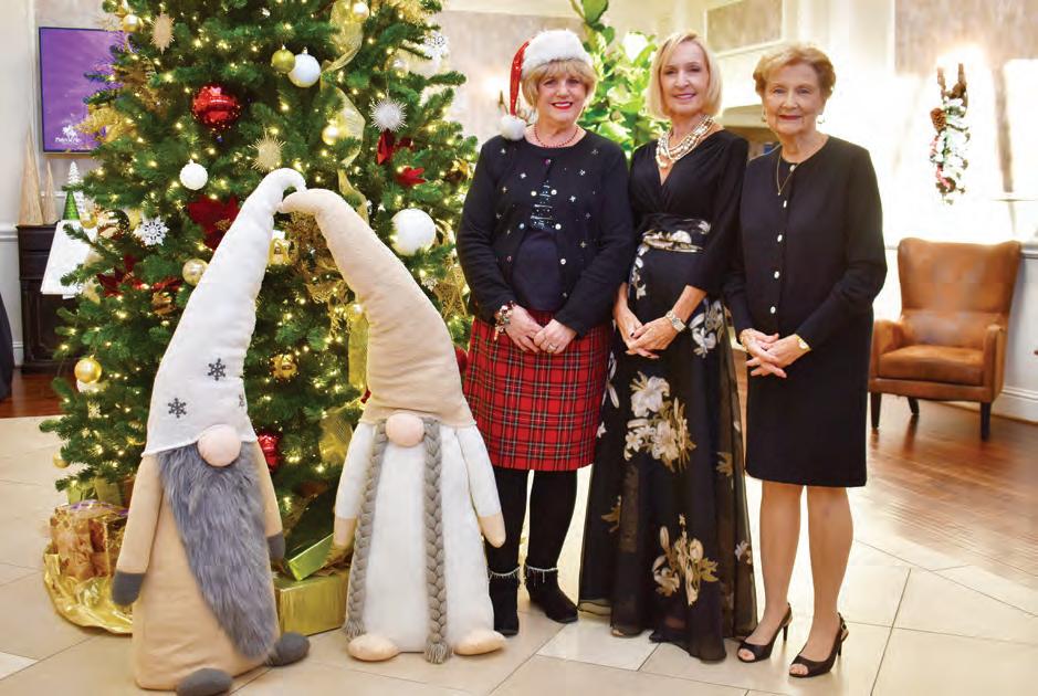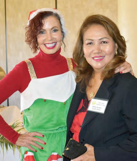 Carolyn Lowry-Nation (above with member Susan Gimbert) hosted a catered holiday social at her Esplanade home on Dec. 9. Nearly all 41 members of the club attended.