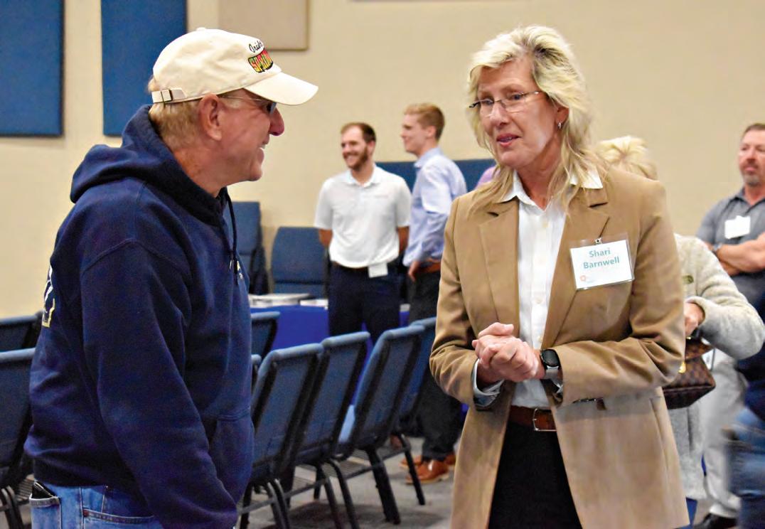 Twin Rivers resident Tom Thayer speaks with Kimley-Horn’s Shari Barnwell. Barnwell is the project manager on the design of Fort Hamer Road.