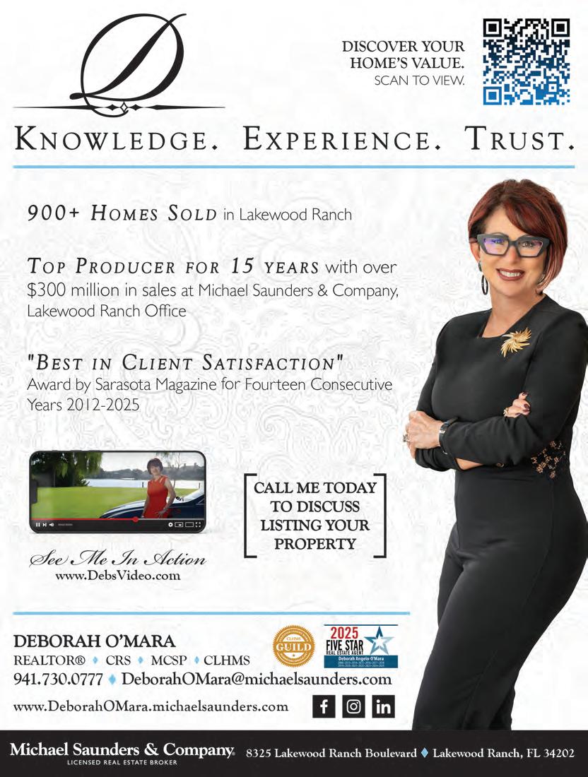 Ahome in Lake Club topped this week’s sales. SD TLC LLC sold the home at 15315 Anchorage Place to Patrick Mulva and Mary Mulva, trustees, of Lakewood Ranch, for $6,295,000. Built in 2024, it has five bedrooms, five-and-ahalf baths, a pool and 5,997 square feet of living area.