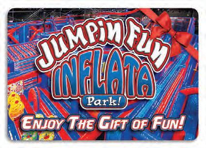 JUMPIN FUN INFLATA PARK 7321 Trade Ct • Sarasota, FL 34240 941-388-5867 www.JFIPark.com Holidays are coming! Jumpin Fun gift cards make great stocking stuffers! Special offer: $50 card for $40 or $100 card for $75. Valid 11/21/22 - 1/31/23. Your Holiday Fun Park!