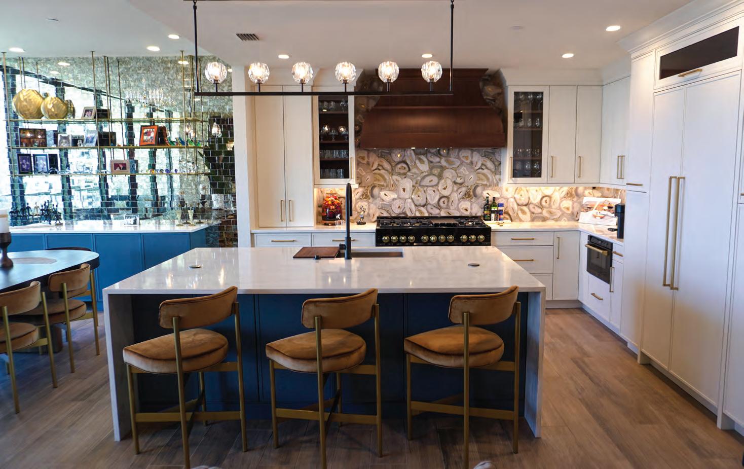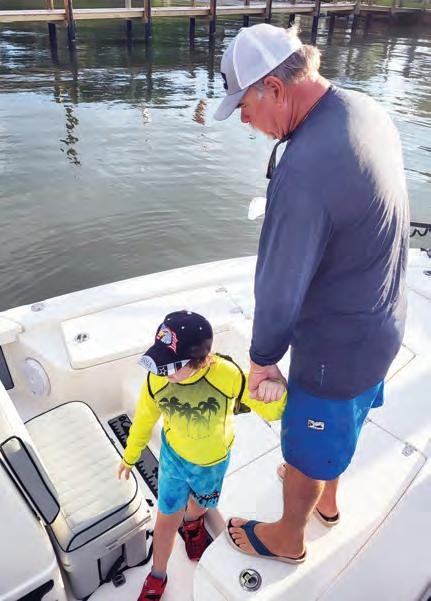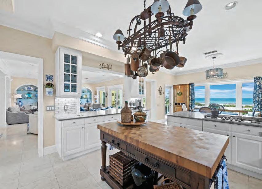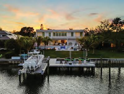Dan and Belle have two daughters, five grandchildren and two greatgrandchildren, so the feeling of the place is that of a real home, yet one packed with amenities and perfect for family life. “It’s a warm home,” Dan says. One amenity that stands out because it’s so rare on Longboat is a deeded boathouse just across Gulf of Mexico Drive. It’s where the family keeps their 30-foot pontoon boat, along with its 12,000-pound lift.