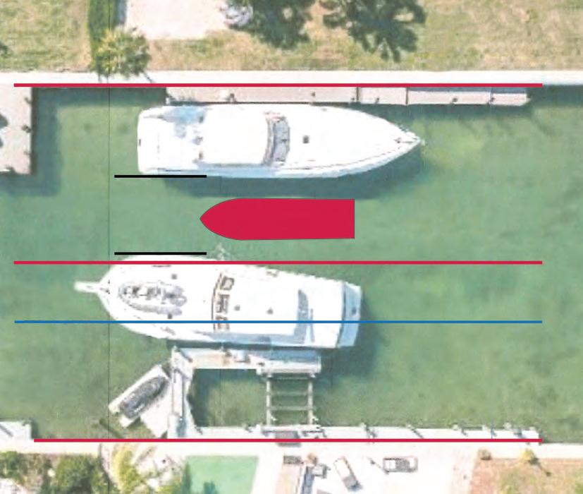The town has rules in place that govern permanent structures such as docks. As a means of regulat ing building practices, docks may not project into a canal more than 30 feet or 30% of the total width of the waterway. The town’s ordi nance, hammered out in early 2020, does not mention boats as obstacles, though.