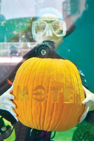 The cleaning can wait when it’s Halloween. Brooke Welch and Rene Raaymakers are volunteer scuba divers at Mote Marine Laboratory and Aquarium. When the pair showed up to clean a tank on Monday, they were given carving tools instead of their usual tools.