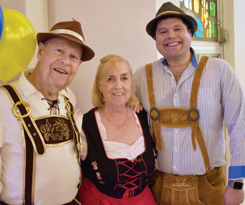 beer bottles back and forth to the music. Minister of Music Michael Bodnyk encouraged a singalong by printing German to English translations of Oktoberfest classics such as, “The Hofbrauhaus Song.”
