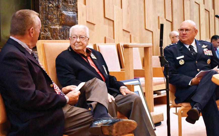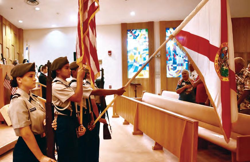 The Manatee High School Junior ROTC opened the ceremony by serv ing as the Color Guard and present ing the flags. After, choirmaster Ann Stephenson-Moe played the organ while directing a group of vocalists, a trumpet player and a drummer through a series of patriotic tunes.